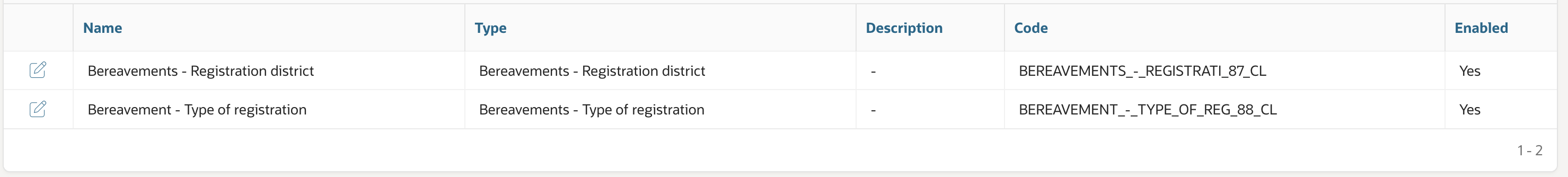 You can search by bereavement number or use filters to narrow results by parameters such as type, date, or status.