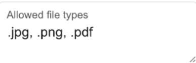 This feature allows you to dictate what file types are allowed to be uploaded. This option is configured by listing the file types, such as below: