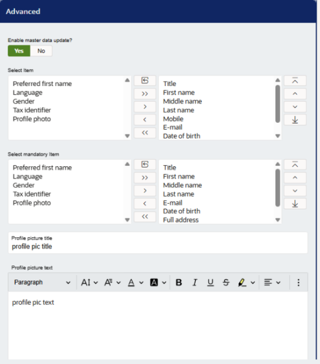 Profile Picture Title and Profile Picture Text – These options will only display if the ‘Profile photo’ option is selected in the previous options, and presents as a dropdown in the following way: