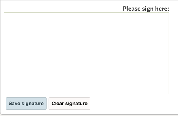 The Signature Component allows you to capture electronic signatures on forms when raising service requests. This component can be used on the Customer Portal, the Admin Portal, and within the Mobile App.